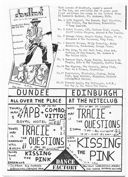 Hilary's drawing of Stuart Adamson and the incomparable lumberjack shirt, Roy Terre's interview with guitar hero and The first NEW ORDER interview ever, by Karen - the scoop of scoops as Keith ensured Deadbeat got out before the real music press!